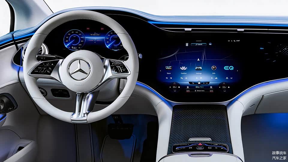 作为奔驰全新推出的纯电动轿车,EQE在外观设计上和“大哥”EQS一样,采用了和燃油版本完全不同的设计。整车采用了更加具有coupé风格的溜背车顶,在燃油车型前格栅的位置也采用了很受欢迎的“星空”式全封闭设计。目前以海外版本的信息来看,新车还可以通过选装“aero wheels”,也就是封闭式轮毂,来获得更加符合空气动力学的车身。内饰方面整体以浅色风格为主,之前让各大车评人都夜间出动的氛围灯也没有缺席。另外EQE也可以和EQS车型一样,选装“Hyperscreen”仪表,由一整块横跨141cm的超大尺寸液晶屏幕,来涵盖从仪表盘到中控屏和副驾驶位置的所有操作界面。