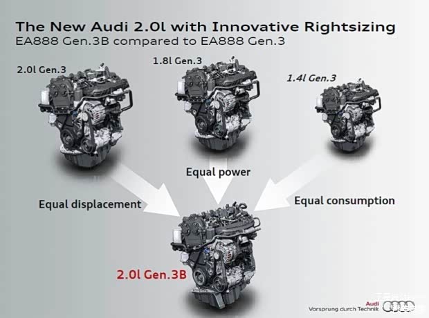 为了应对越来越严苛的节能减排要求,几乎每家车厂都在研究怎么使用更小的发动机驱动更大级别的车辆。这就是近期非常火热的发动机小型化(DownSizing)趋势。但是偏偏这个时候奥迪发出了不同的声音,认为发动机并非越小越好。在第36届维也纳汽车研讨会上奥迪提出了发动机适度尺寸(Right Sizing)理念。而这个理念的灵魂就是米勒(Miller)循环发动机。那么发动机适度尺寸理念和米勒循环发动机到底是什么样的,请各位慢慢往下看。