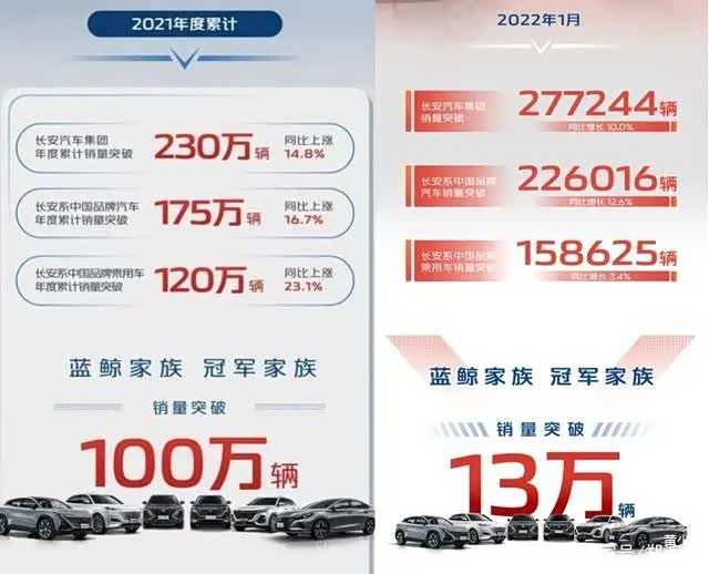 之后跟华为深入合作的还有这几年市场表现非常强劲的长安和广汽。从销量看,2021年长安系中国品牌汽车销量突破175万辆,同比增长16.7%,乘用车累计突破120万辆,同比增长23.1%。2022年1月,长安系中国品牌汽车取得了226016辆的成绩,同比增长12.6%,继续领跑中国车市。广汽的表现同样抢眼。