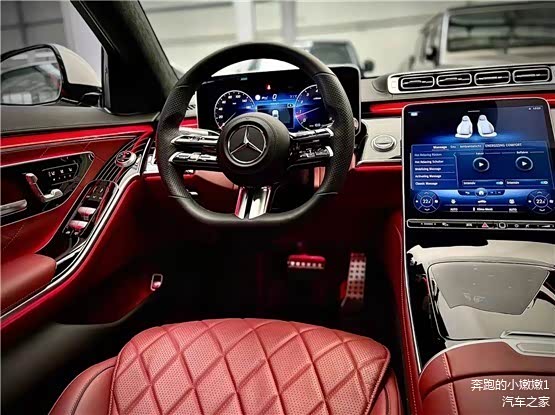 22款 奔驰S500(图片 | 参数 | 询价)中控台垂瀑式中央触控屏从中控台纵向延伸,凸显出了简约的设计感。整个内饰的豪华感当然是无须质疑,触手可及之处几乎全用上了皮革包裹,配合带263个LED单元的动态氛围灯进一步升华了内饰氛围感。