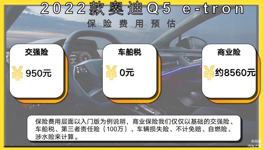 保险费用层面,我们以入门版为例说明,商业保险我们仅仅以基础的交强险、车船税、第三者责任险(100万)、车辆损失险、不计免赔、自燃险、涉水险来计算,这几项的综合费用为9870元左右,当然您在买车的时候可以根据自己的需求去选择是否购买像玻璃险、自燃险、车上人员险等其他险种,另外,我们建议第三者责任险可以购买150万或者200万额度,保费增加并不多,在汽车保有量很大的一线城市,道路交通状况复杂,高额度的第三者责任险是有必要的。