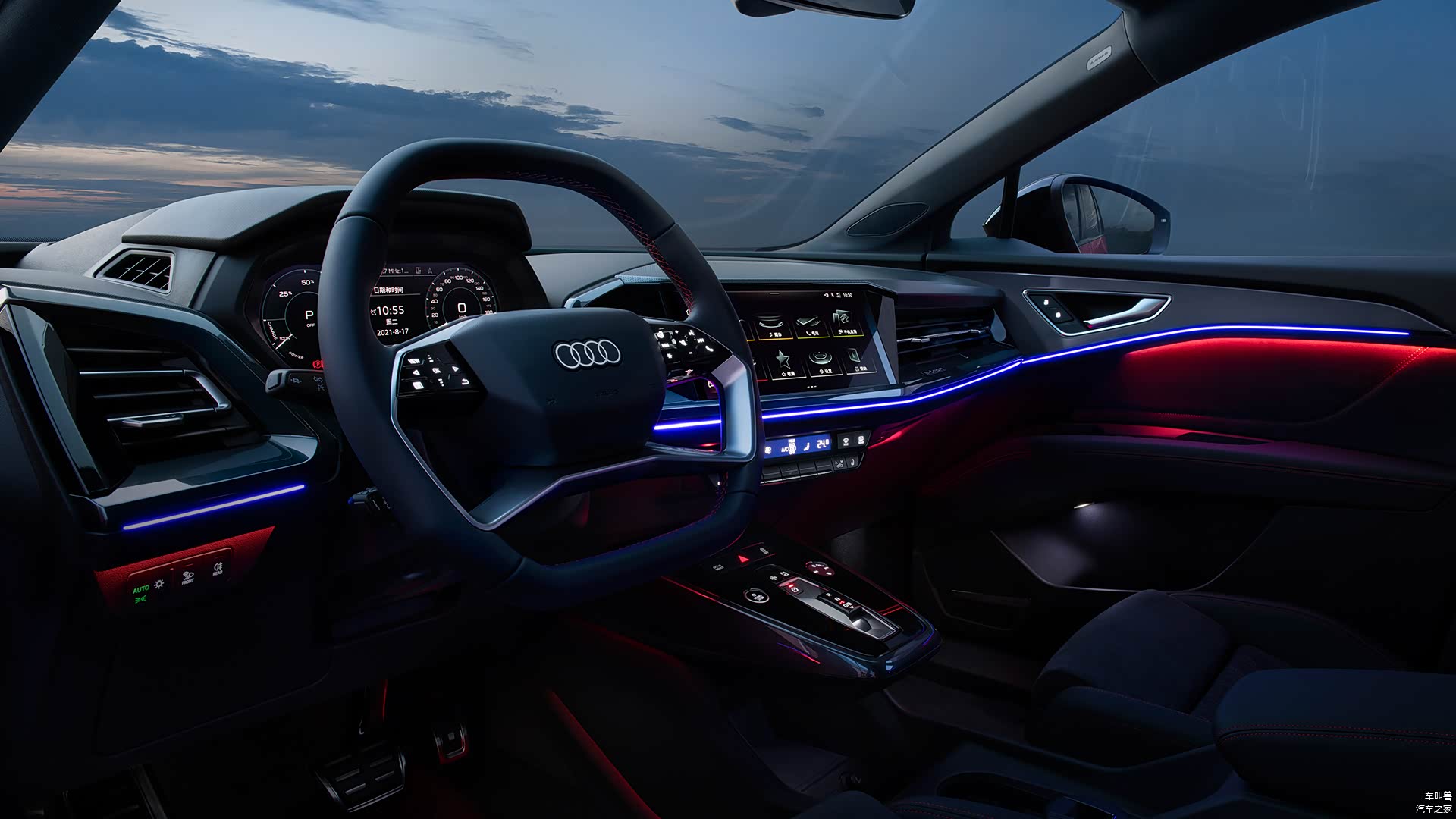 进入座舱,我们首次在国内的奥迪车型上看到四辐式的方向盘,视角效果更有张力,方向盘上的按钮也都是带有震动反馈的触控按键,体验感更优。视线穿过方向盘,是增强型数字仪表,驾驶过程中不仅能够从仪表上得到车辆行驶数据,还有AR HUD协同带来更强的未来驾驶气息。换挡部分采用了滑块式电子换挡机构,相信它带来的体验感也是更加有趣。