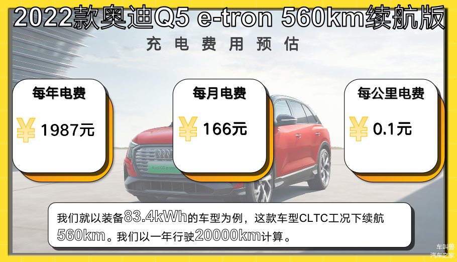 综合了保险、保养以及用电费用,我们得到Q5 e-tron每年的开销大概在12537元,每个月的平均花费不足1045元,整体的花费相对于其豪华车的身份来说非常便宜,主要归结于充电、保养的低廉优势。