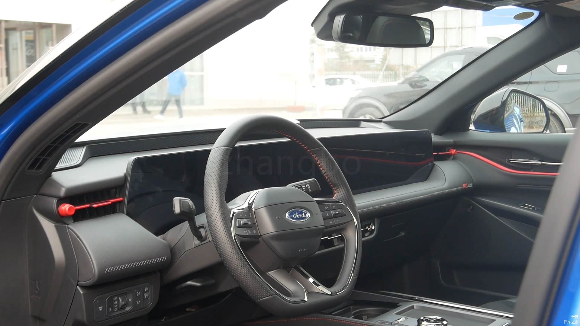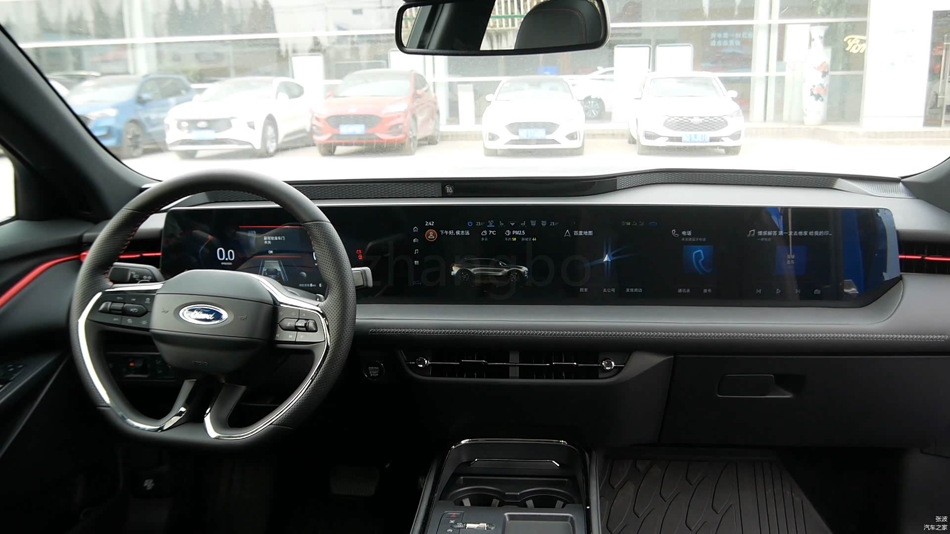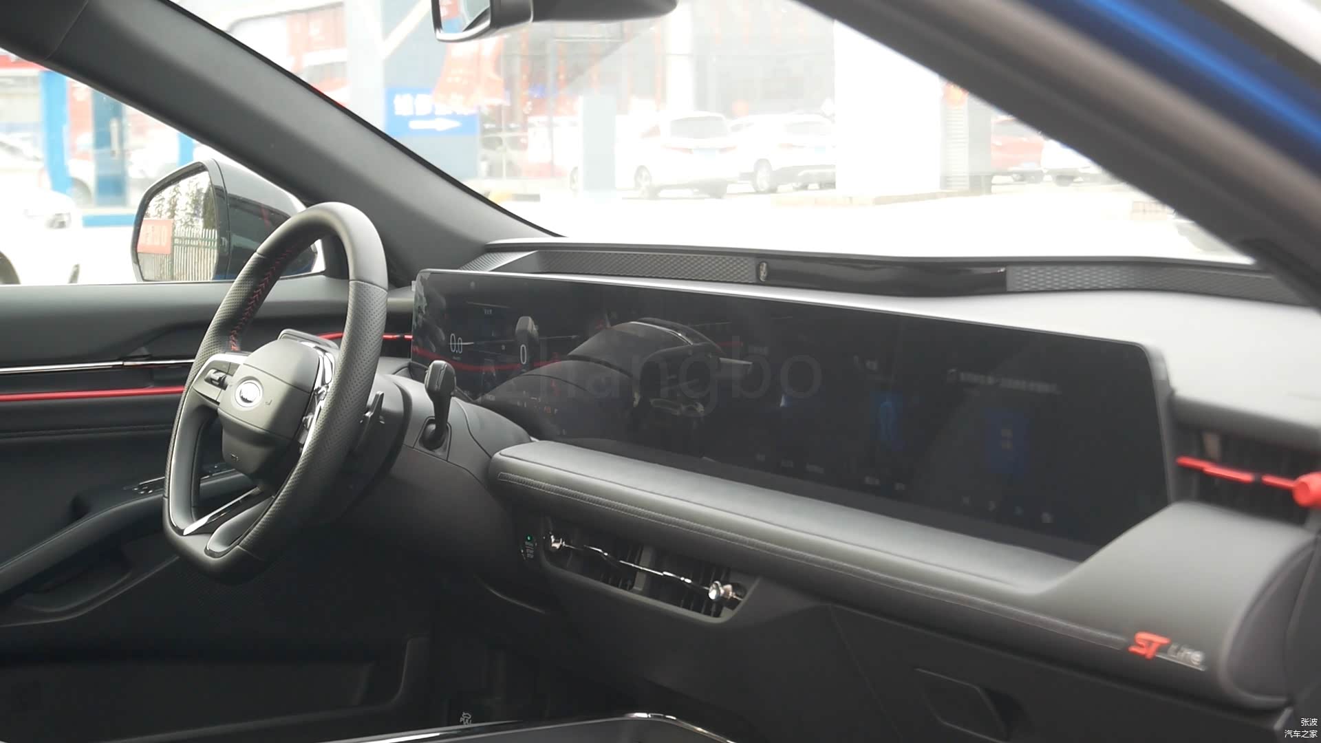 进入车内,大尺寸的贯通式屏幕造型显得非常惊艳,方向盘的设计也是非常的犀利,并且运用了悬浮式的中控台造型,车内采用了全黑的配色,增加了运动的设计,车内空间的表现还可以。