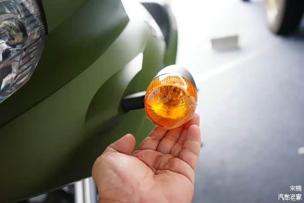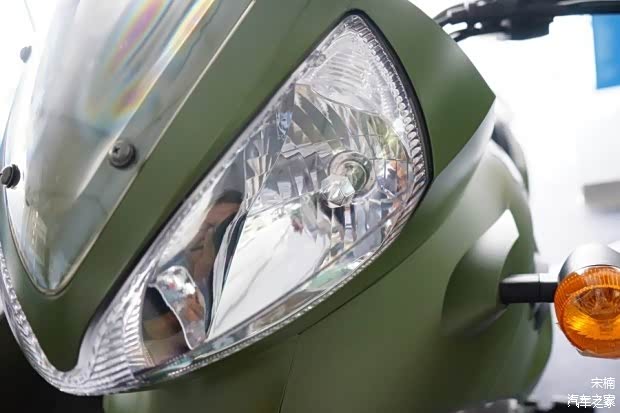上图JH600BJ的左前灯特写,内置反光板、卤素(H7)灯泡照明,与汽车车用灯泡通用。