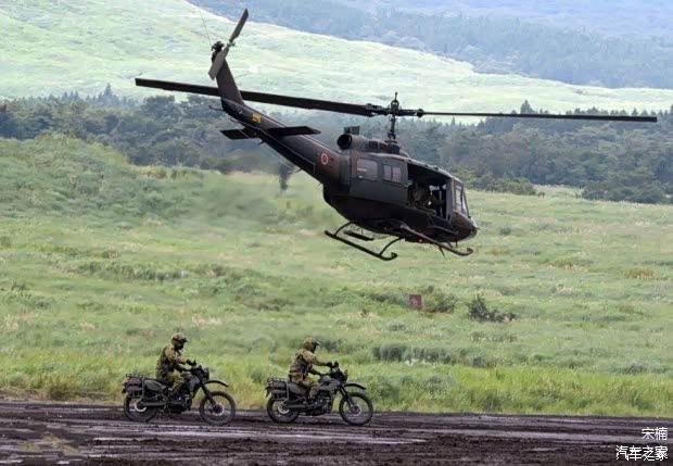 上图是日本陆军在富士演习中,与UN-1系列直升机随行“空地一体”式战术侦查。