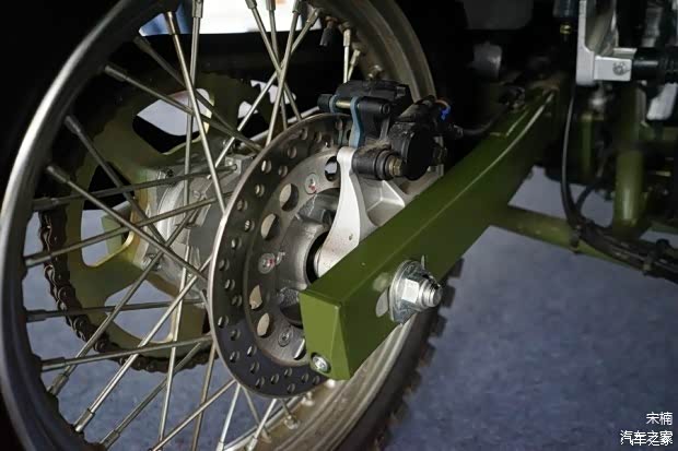 上图是JH600BJ后驱动轮制动盘、制动卡钳以及ABS传感器特写。后轮制动盘虽然小于前轮,但与货斗的随动轮一起制动,仍然可以满足整车设计要求。