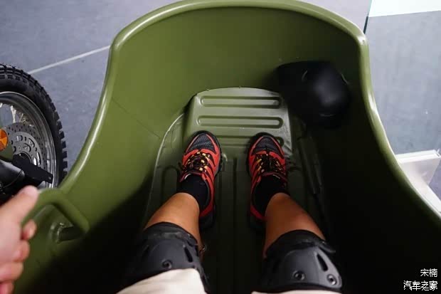 上图是笔者左手抓住货斗扶手,双脚踩在货斗底部的防滑凸起上的特写。以笔者身高不足1.73m来比对,JH600BJ的货斗空间还是很有优势。在必要时候可以应急搭载第4名乘员或承载更多的辎重。