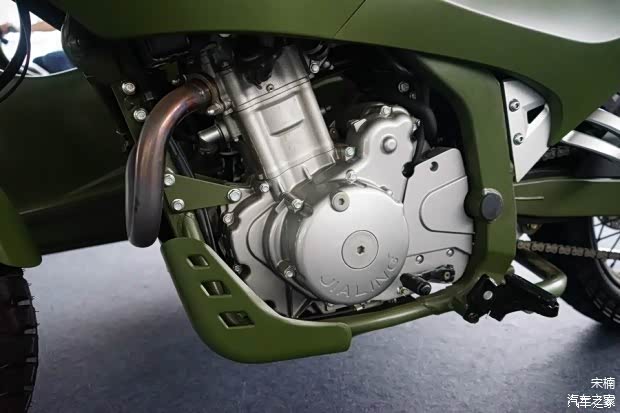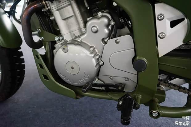 JH600BJ的发动机由嘉陵自行设计自行生产,排量600ml、单缸、4气门、单顶置凸轮轴设定、全铝合金材质。因为采用水冷散热系统,也配备了散热器、水泵和相关管路。目前多数家用摩托以风冷散热为主,虽然结构简单,但是在排量和功率上有所限定,如果功率提升,很容易造成散热效率降低,导致整车水温偏高影响寿命和动力输出。如果加装水冷散热系统,将会对加工工艺、动力总成的体积和结构优化上要求较高。