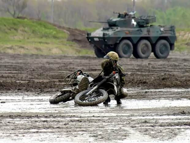 日军地面部队装备大量川崎250R系列军用2轮摩托车。