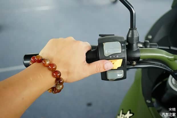上图是JH600BJ的转向车架、左侧握把以及控制组合开关特写。握把的橡胶贴层有表面突出防滑设定;左右转向灯开关、电喇叭和远近光开关用颜色来区分。笔者尝试着在操纵这些开关,能够明显感受到转向灯开关左右摆动时没有丝毫的虚位。操纵力矩适中,开关表面防滑涂层手感细腻。