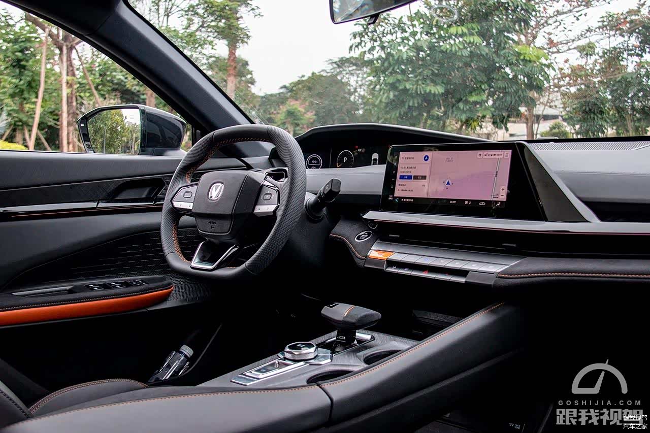 接下来就该进入到内饰了,长安UNI-V在内饰方面也算是下足了功夫,除了在选材用料方面以软性材质为主之外,还额外增加了翻毛皮和金属材质,使整个内饰在细节上更加凸显质感。另外其采用的不对称液晶显示屏,也足以提升整车的个性化和科技效果。
