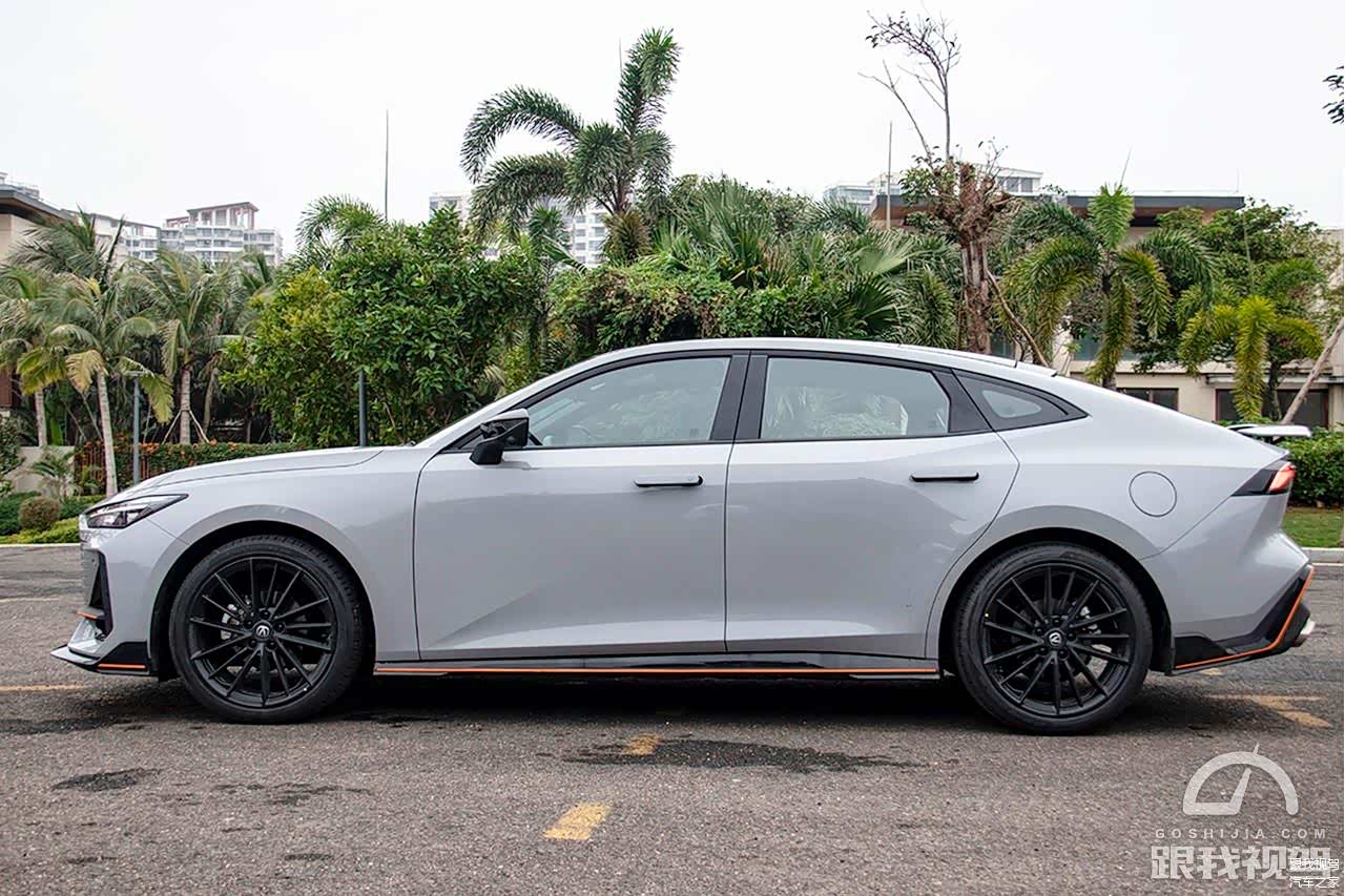 除了车头的看点比较足之后,整个车身侧面也能看到一些特点,首当其冲的就是类似于“奥迪A7”的溜备造型设计,不过受限于尺寸的原因它看上去更加紧凑,整个线条并没有那么优雅,但运动感营造的比较到位。另外1430mm的车身高度比广汽传祺影豹和领克03等同类产品更加低趴,但是轴距却比他们更长,2750mm的轴距完全可以满足家庭使用。此外就是长安UNI-V所采用的隐藏式门把手也要比其它车型更突显科技氛围。