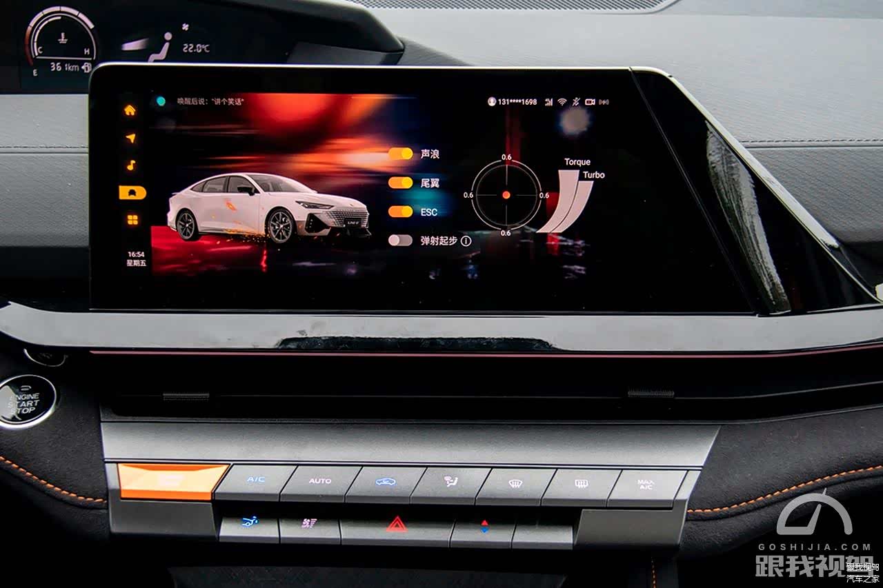 或许视觉上带来的效果因人而异,但位于中控显示屏下方物理按键中的“电动升降尾翼”按钮和新增的“SUPER RACE”按键,足以为你带来超越15万价格的刺激和享受。当然细心的你已经在屏幕里面看到了“弹射起步”的开关,没错!此时弹射起步和旁边的动力数值显示器更像是锦上添花。