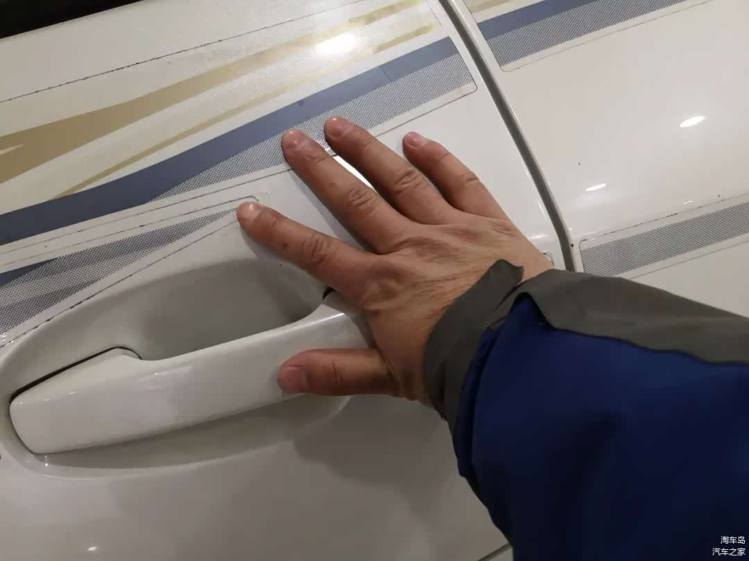 听车商说得这么好,我们还是要以实地验车为准,为了提高淘车效率,淘车顾问先去对车进行了初检,结果发现车况还真是不错,只有右前门处有一块巴掌大的补漆,其他地方还是原车漆,也没有发现涉水、火烧等现象,看来“岛弹”是捡到宝了。