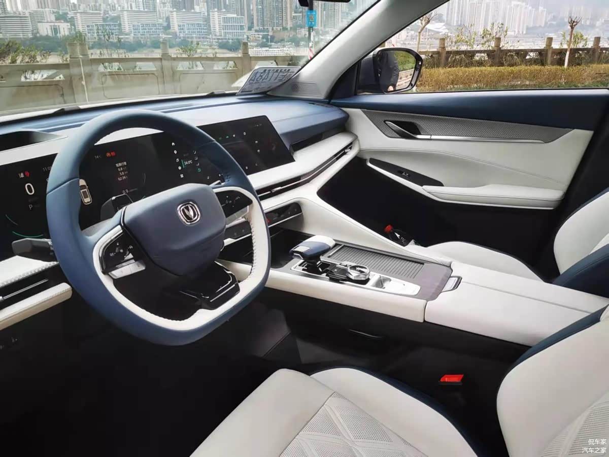 第二代CS75 PLUS的内饰有三种配色,黑灰、红黑、蓝白,本次我们试驾的是蓝白配色版本,一坐进车里豪华科技感扑面而来。新车的仪表盘与中控屏采用了双12.3英寸液晶大联屏的设计,这种设计颇有档次而且倾向于消费者,不但有科技感而且人性化。配置方面,第二代CS75 PLUS提供了四种模式的抬头显示,便于用户在驾驶过程中实时掌握行车信息和前方路况。还新增了集成FACE ID和AI疲劳监测预警功能的摄像头。其他配置上,新车还配备了进阶版的梧桐车联系统、SONY音响、智能儿童呵护系统等,空间方面,由于这台车的车身尺寸老款车型保持一致,轴距依然是2710mm,针对家用来说是绰绰有余。