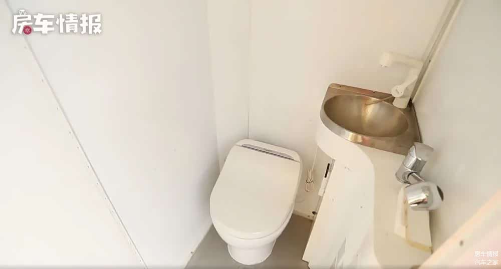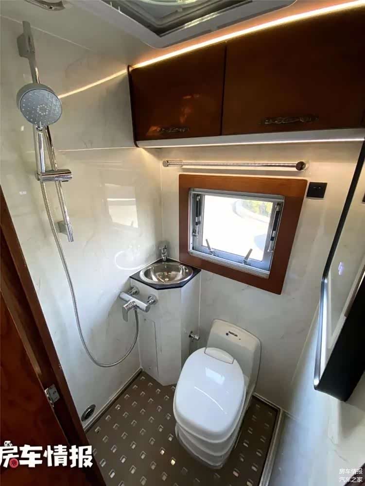 另外车内还有一个独立的卫浴室,提供了马桶、洗手台盆、花洒等基础的设施,也能满足日常基本的洗漱洗澡需求。