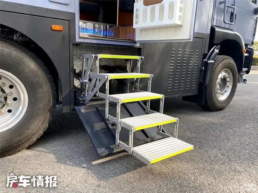 不过相比这些最有意思的设计还是乘客门处的密码锁,而且上车踏步是电动五阶的设计,看起来还是很豪华的。