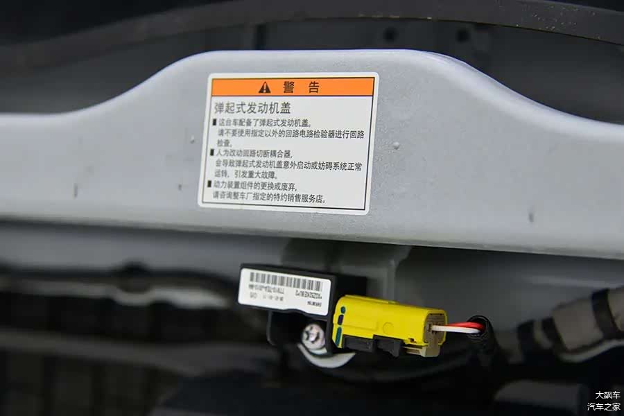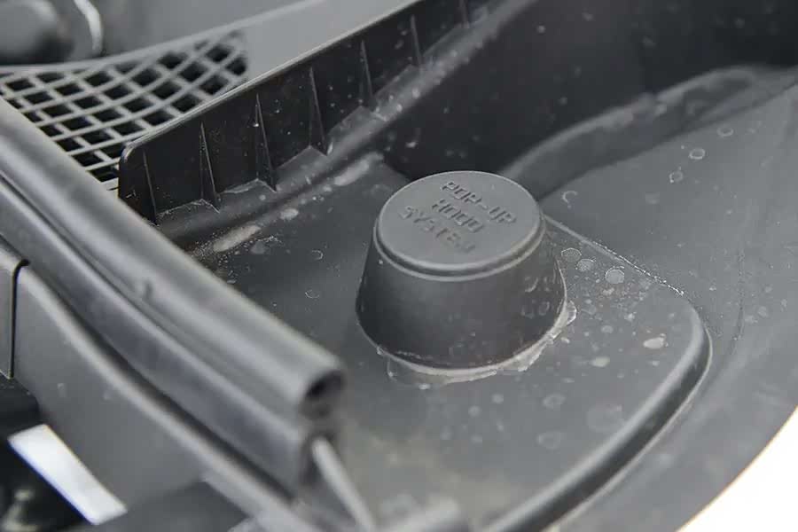 这辆车装有保护行人的主动式引擎盖功能,但触发机制并非常见的橡胶软管配合气压传感器,而是使用老式的G值传感器,精准度比较低,例如,不熄火停车被小动物撞到,都有可能触发引擎盖弹起,给车主造成损失。