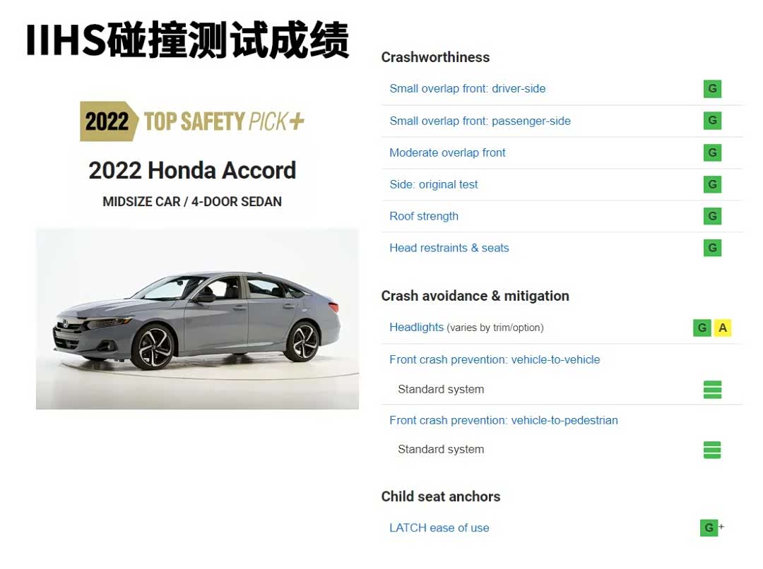 目前这辆车只在美国进行过碰撞测试,得到了“安全之选+”的称号。但北美雅阁的前后防撞梁都是铝合金材质,所以这个成绩也只能作为参考。