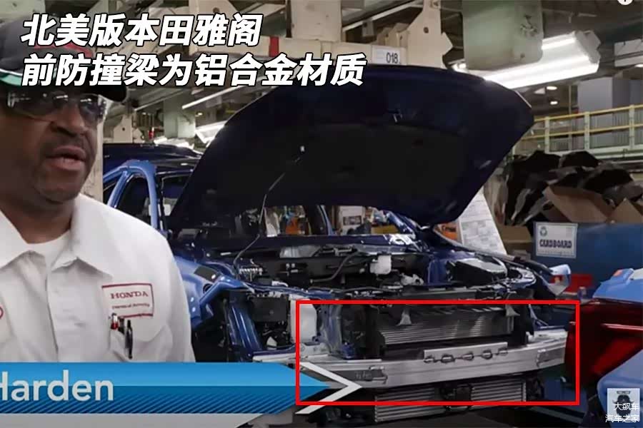 这辆新款雅阁的前后防撞梁,基本与老款一样,并没有什么长进。不仅没有行人保护泡沫,也没有改进引擎盖误弹起的问题,甚至依旧是区别对待,美国用铝合金材料的防撞梁,而国内只用便宜的冲压钢板。