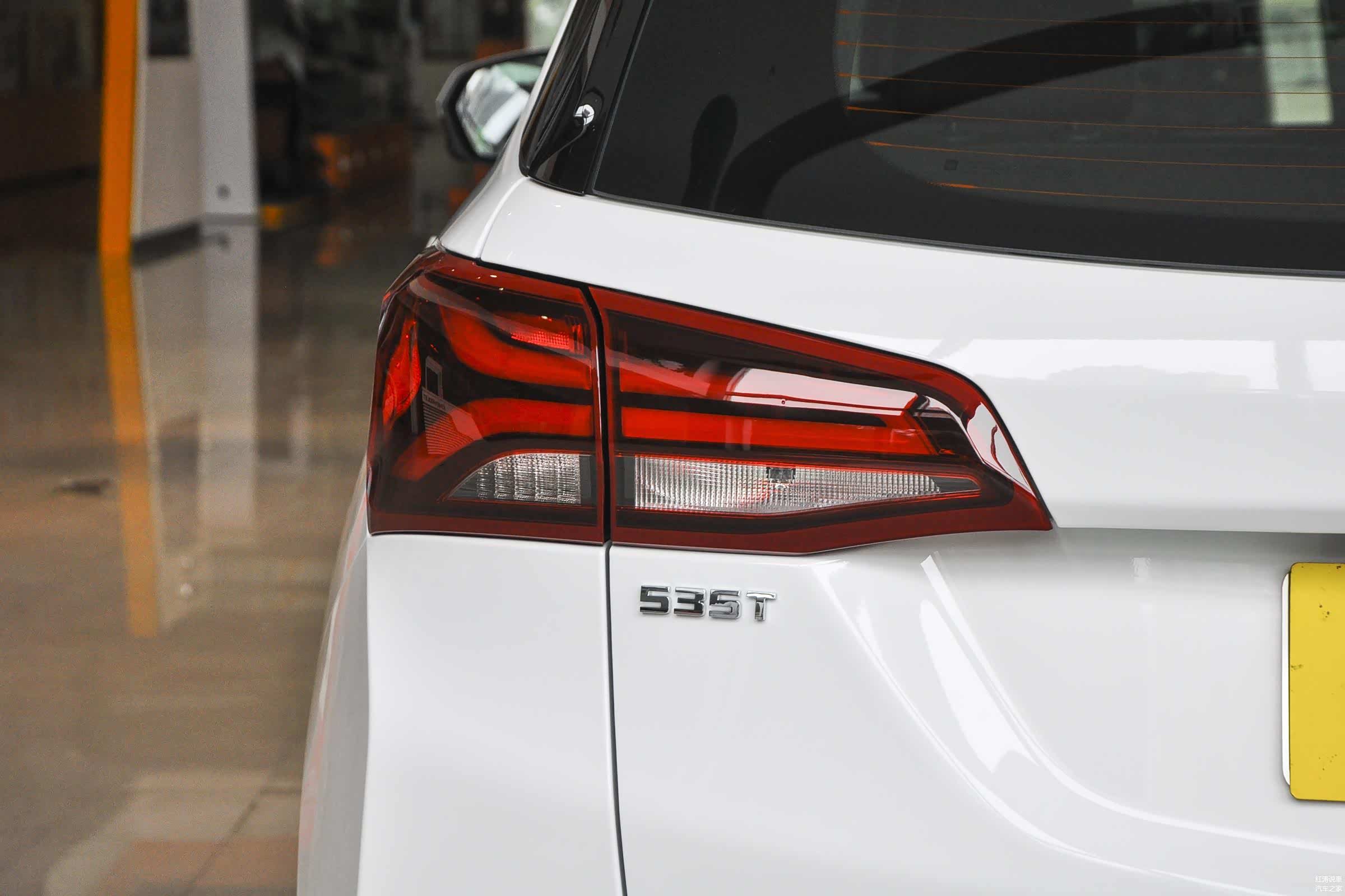 车顶末端配有小型扰流板和高位刹车灯,尾灯晶莹剔透,内部构造清晰可见,黑色的后包围面积比较大,使其更有厚重感,535T版本采用了外露单边单出式排气,而550T RS版本则是外露双边四出式排气。