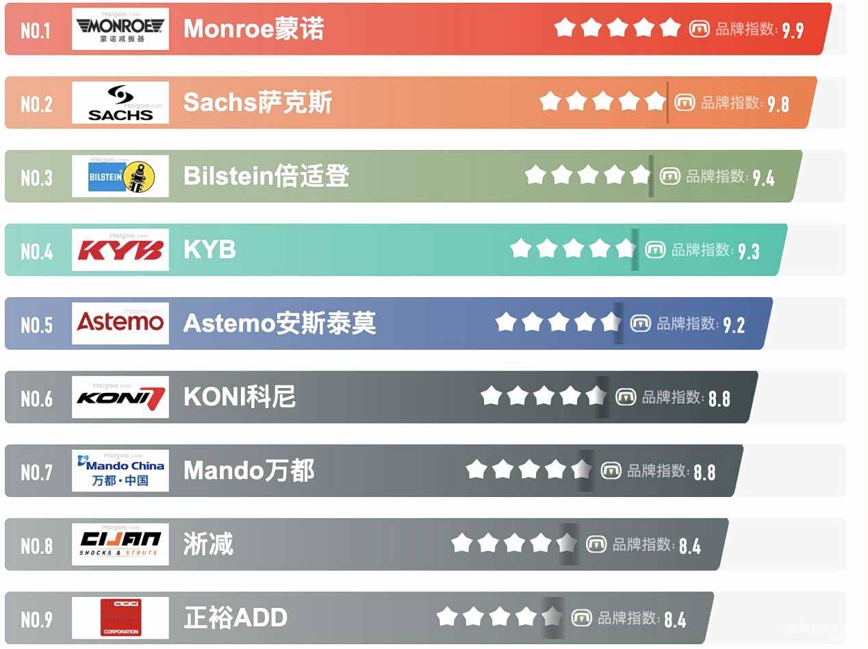 减震器品牌是美国天纳克(又叫蒙诺),目前排名全球第一,德系喜欢用的萨克斯还排名它后面,奇瑞系车型喜欢用的淅川和万都都排在第7之后了。而且第二代CS75PLUS对这款天纳克减震器顶部的刚度又重新调高了些。