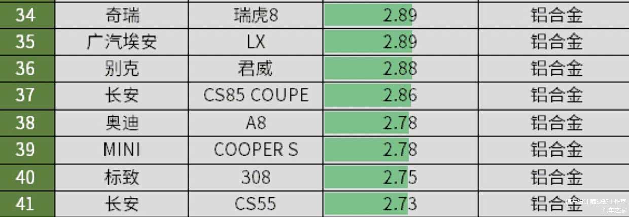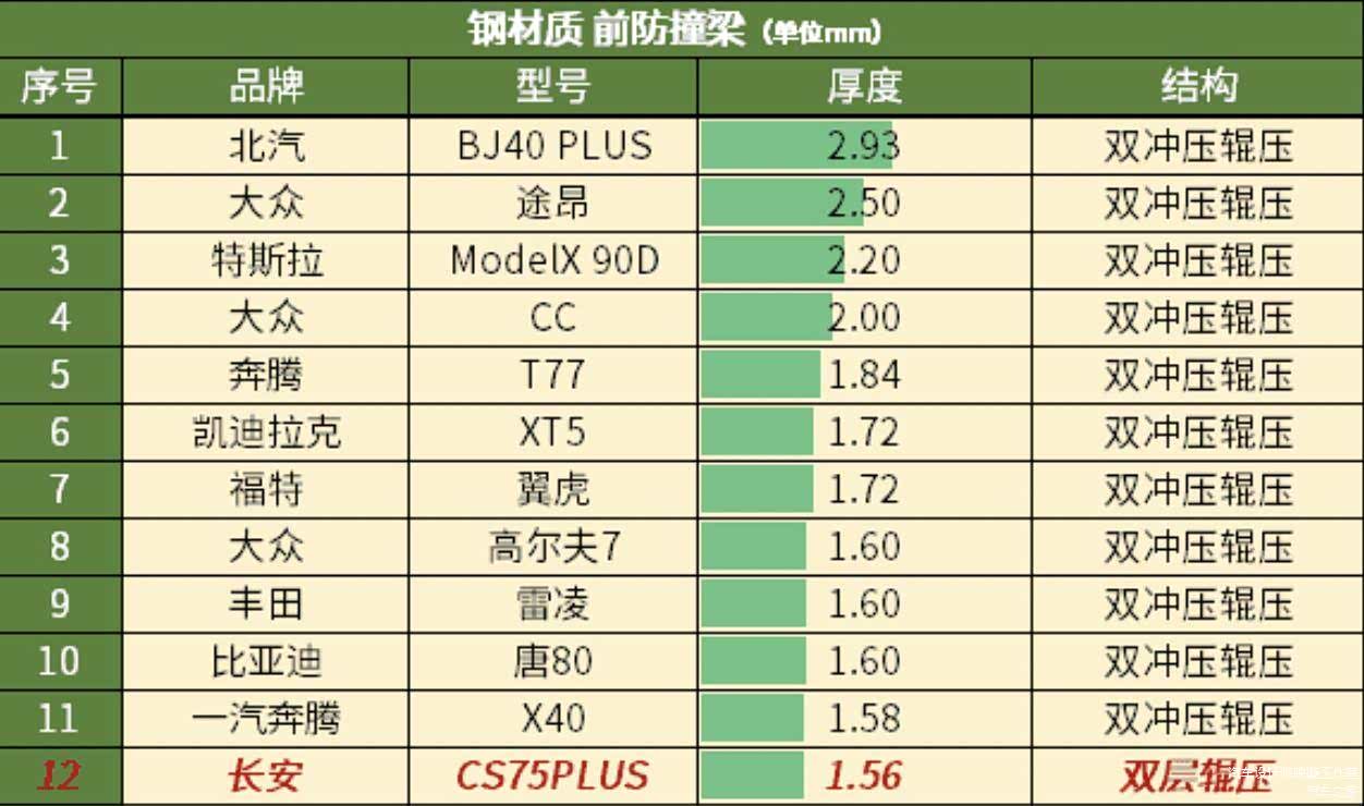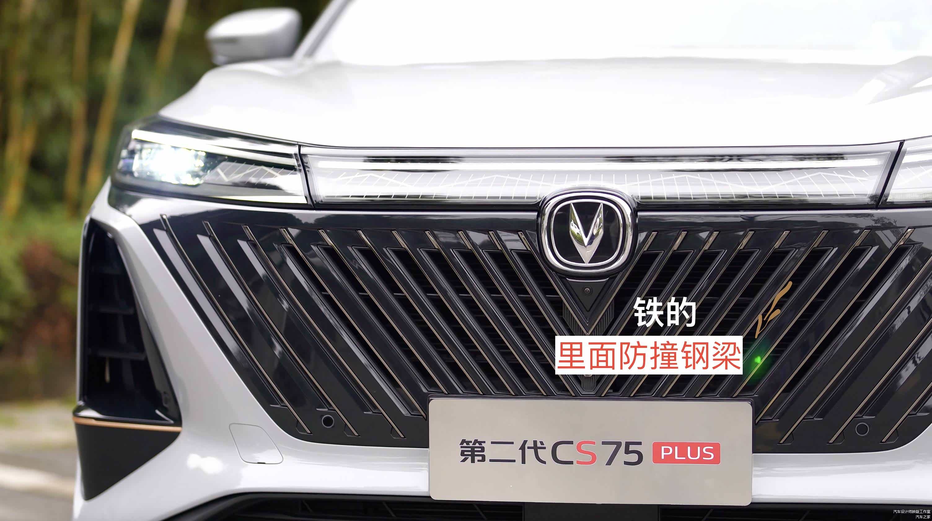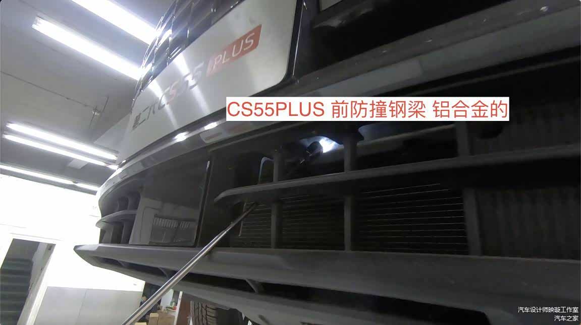 从这张图可以看车,瑞虎8,CS85coupe、CS55这些系列采用的是铝合金的防撞钢梁的。在第二代的CS55PLUS上我们测过它的前防撞钢梁的确是铝合金的,不知道为何75PLUS上却是钢板了。等下次我见到长安设计师时再问一下。