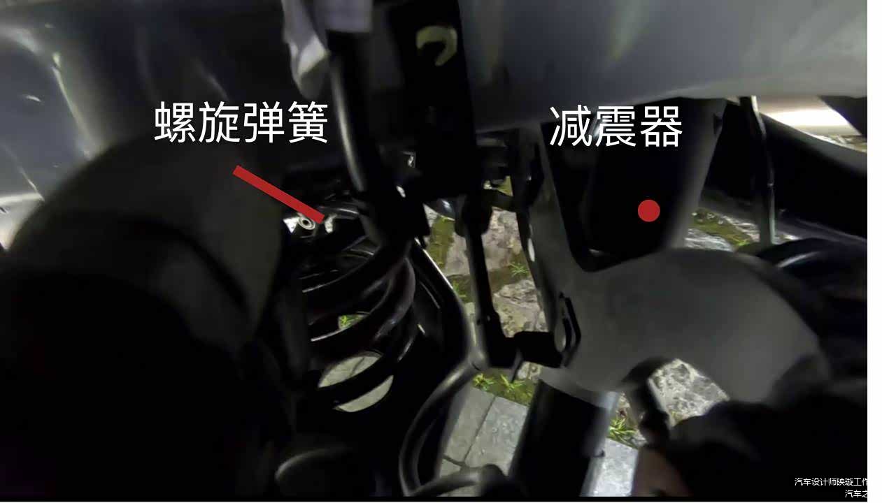 前悬架螺旋弹簧和减震器是一体,能给车身前部省下一些空间。