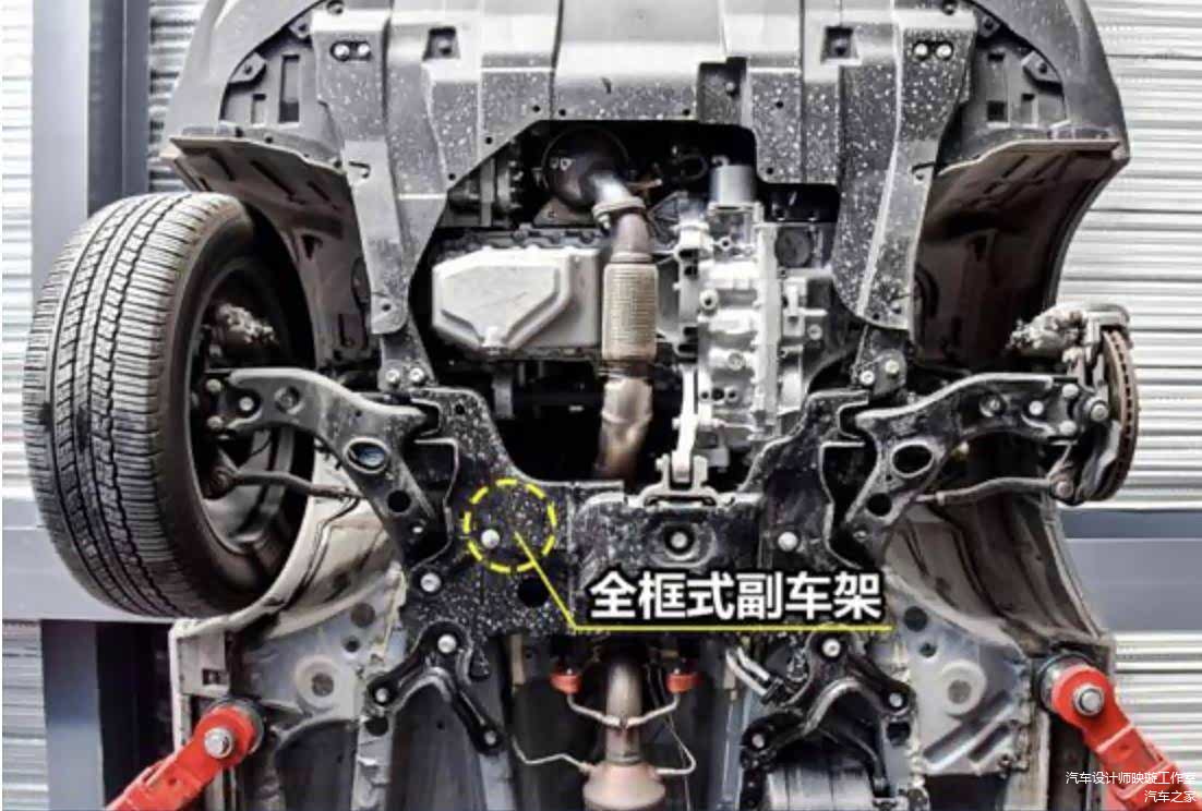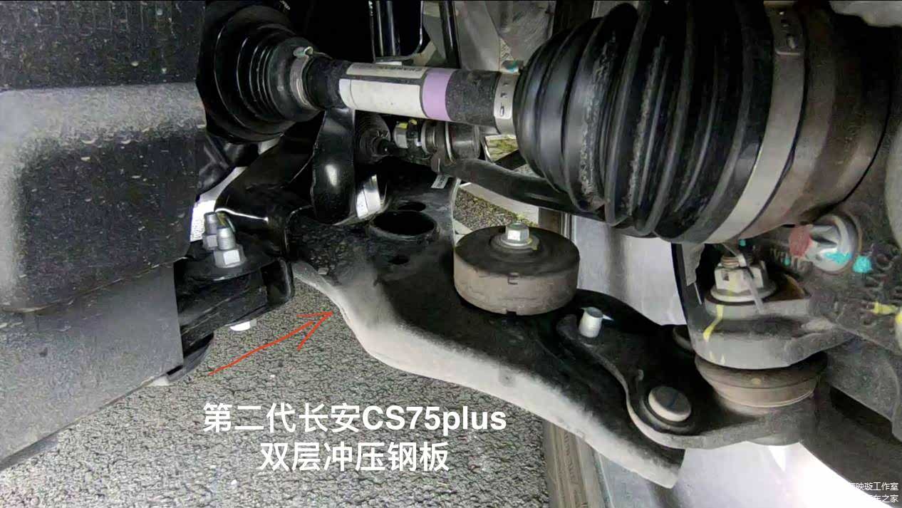 我们来看第2代长安CS75plus底盘结构,和上一代没有明显差别。都是承载式车身,全框式副车架,前麦弗逊独悬,后多连杆独悬。