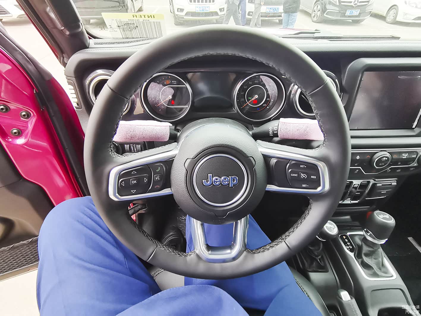 在很多方面,牧马人保留着越野车的粗狂,比如机械手刹,手动的座椅调节等。右边的变速箱档杆上面带有吉普早期的车型,左边则是越野模式切换。