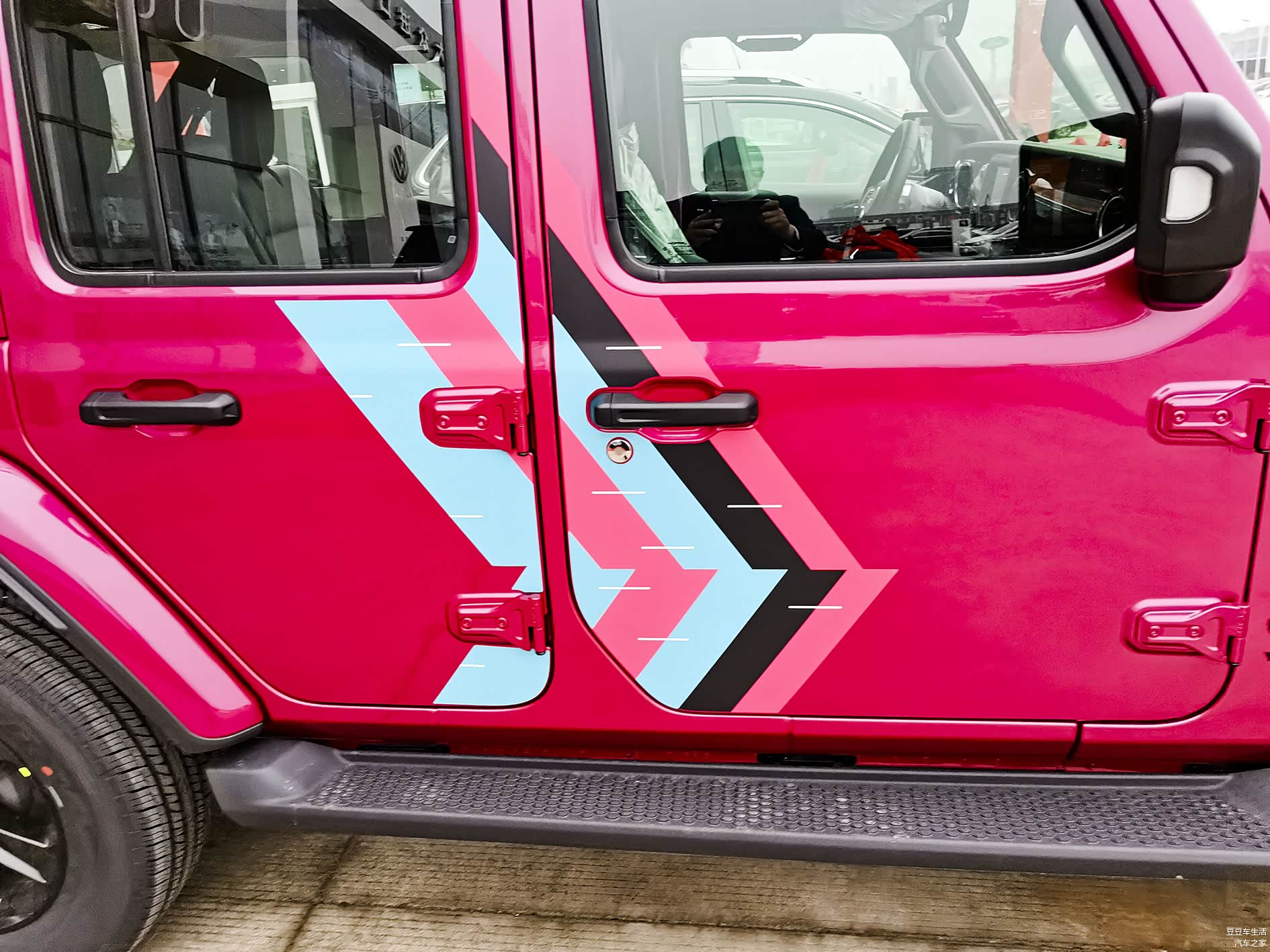 粉色这个颜色我感觉很骚,特别适合那些闷骚的人,一些美女是很喜欢这个颜色的,很多化妆品都喜欢用粉色的包装,有些热爱粉色的朋友会把自己的车贴上粉色的车衣,而牧马人巴哈马沙滩粉本身就是这个颜色,不需要贴车衣,不需要报备,所以省去了很多的繁琐。