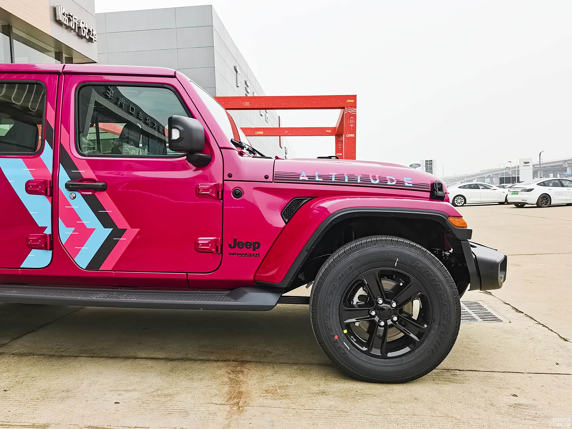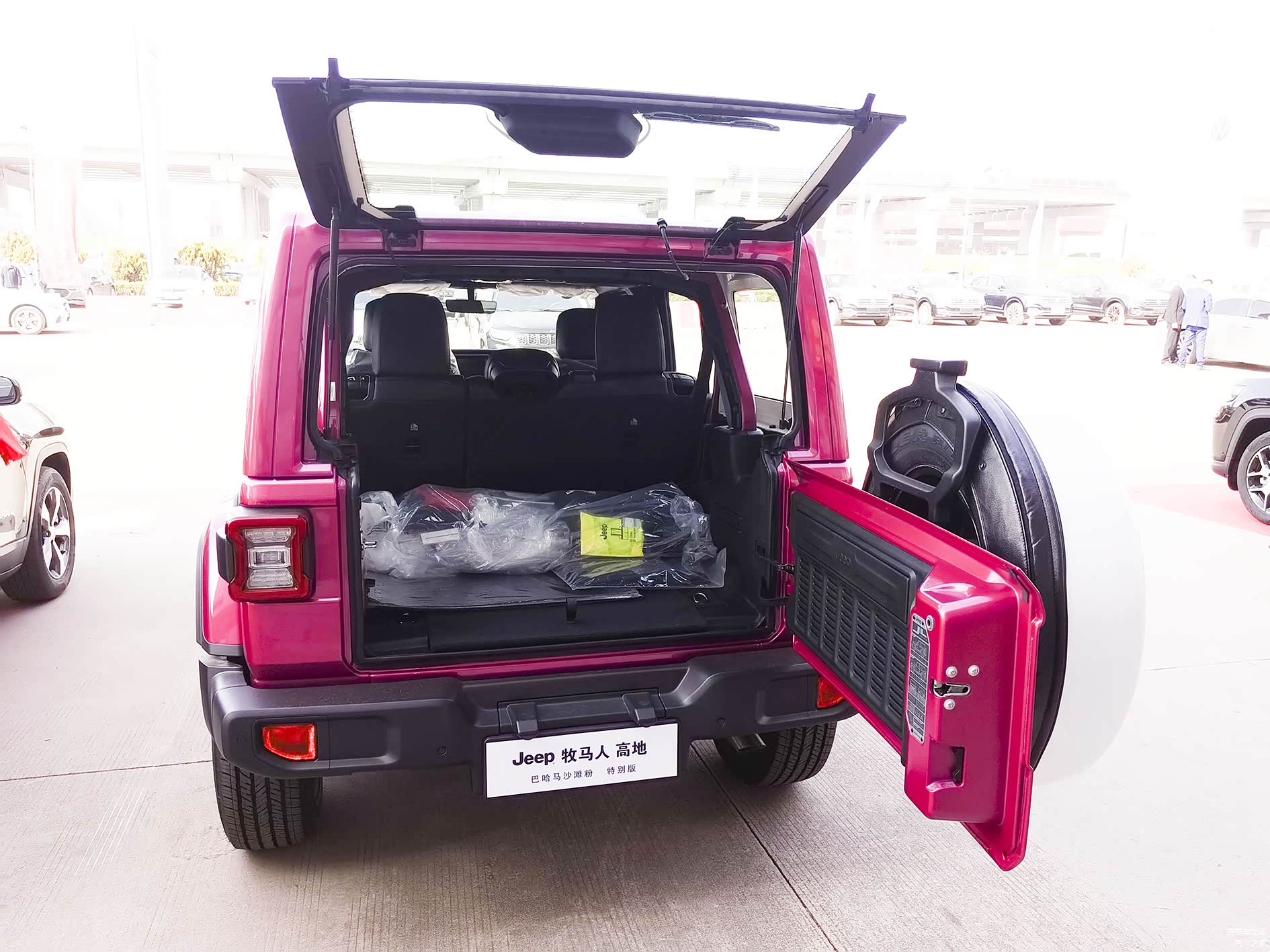 看的啥车:Jeep牧马人高地 巴哈马沙滩粉特别版(看看这名字有多长)