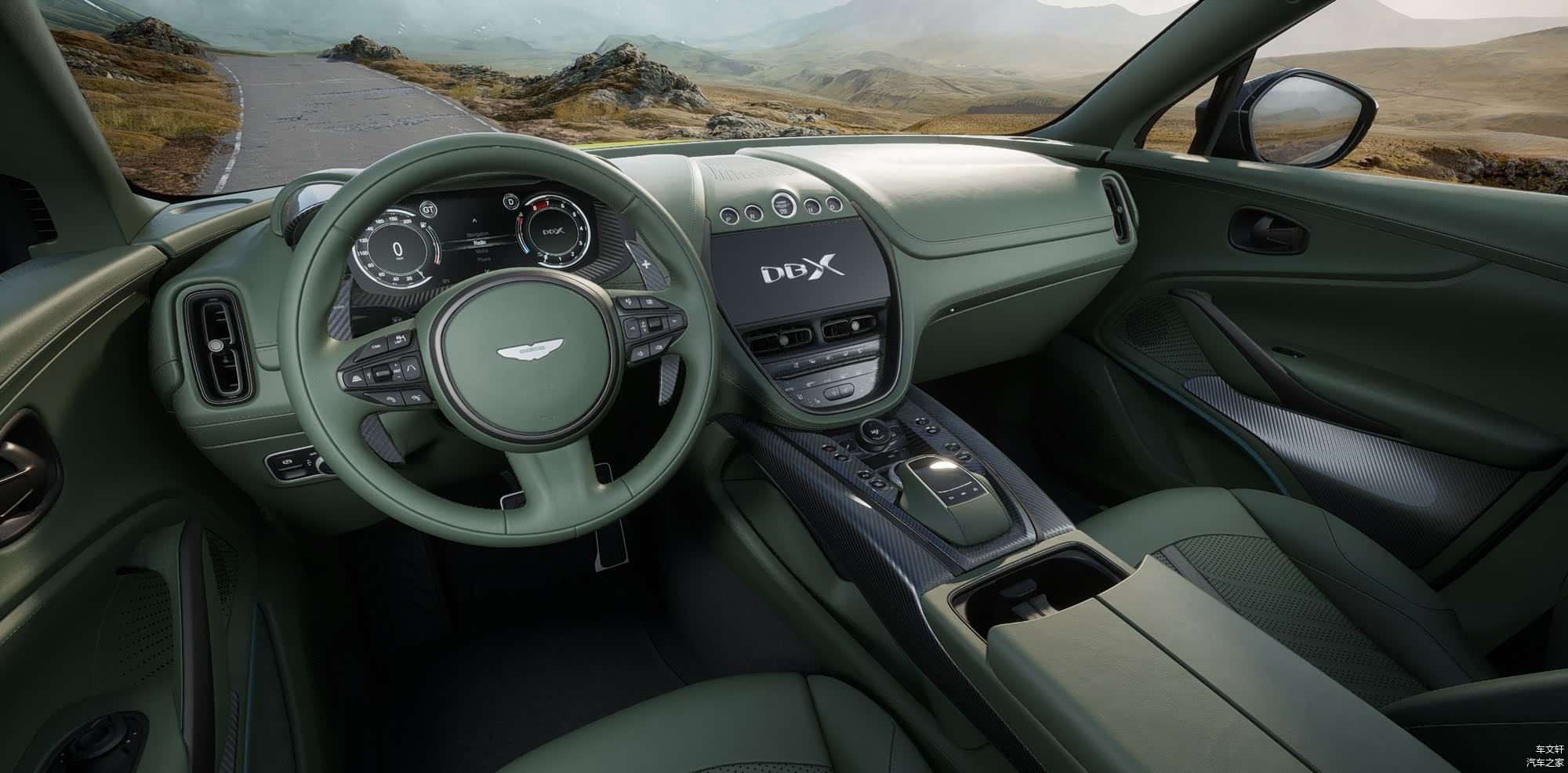 在内饰上,阿斯顿•马丁 DBX 707沿用了阿斯顿•马丁家族式的设计语言。在配置上,阿斯顿•马丁 DBX 707配备了三幅式多功能方向盘、全液晶仪表盘、内嵌式中控液晶屏、带16向电动调节的增强型运动座椅、碳陶刹车盘、电子助力转向、电子限滑差速器、空气悬架、电吸门等高科技装备。