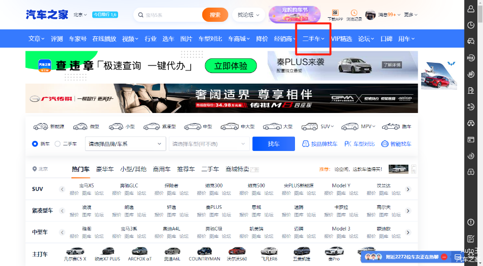 我们进入全球最大的汽车网站-《汽车之家》,在首页菜单导航中直接进入“二手车”页面,在其中我们选择 “诚信车”频道,里面的车辆是经过天天拍车297项目专业检测,车辆车况真实透明的车源!当然,我们在汽车之家的APP也能找到这种入口,也是非常方便!