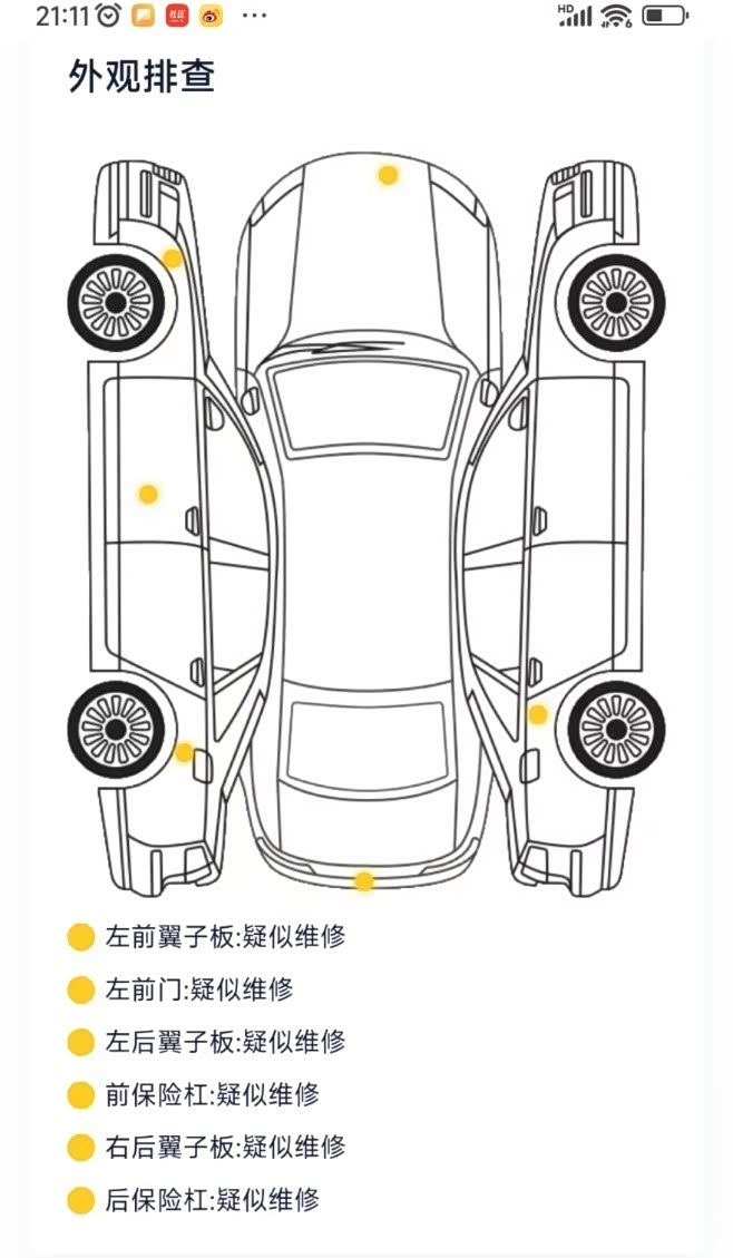我们能看到这部车的漆面光滑明亮,我们通过汽车之家-诚信车的信息能查到,该车的车身覆盖件有过钣金喷漆历史,包括前后保险杠、右后翼子板和左侧一些覆盖件,不过均未伤及骨架,为此有过8千元的出险理赔金额。