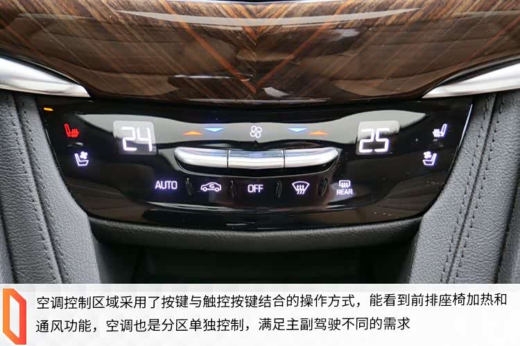 空调控制区域采用了按键与触控按键结合的操作方式,能看到前排座椅加热和通风功能,空调也是分区单独控制,满足主副驾驶不同的需求。