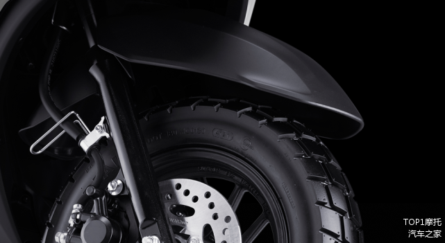 拉力风格的多功能胎,从90-90/10增加到100/90-10,最小离地间隙提升到125mm,位置更高的前挡泥板提升了通过性,这也是决定福颖跨界风格的最重要组成部分。