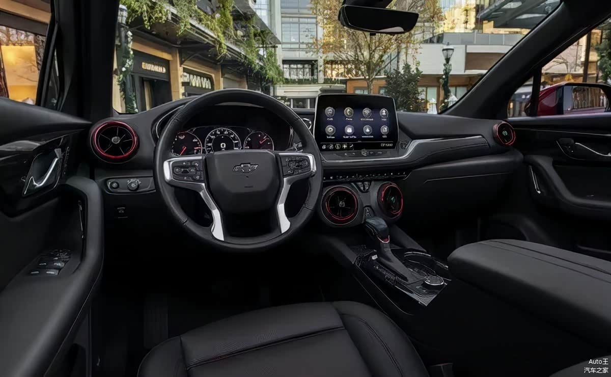 内饰方面,雪佛兰Blazer沿用了现款车型的内饰设计,左右造型都未作变更。仅在升级Radiant Red配色的同时,2023款Blazer RS 将原有的 8英寸中控触摸屏升级为了全系标配10 英寸中控触摸屏。除此之外,新车还标配了智能手机无线充电和4G LTE Wi-Fi 热点等功能。