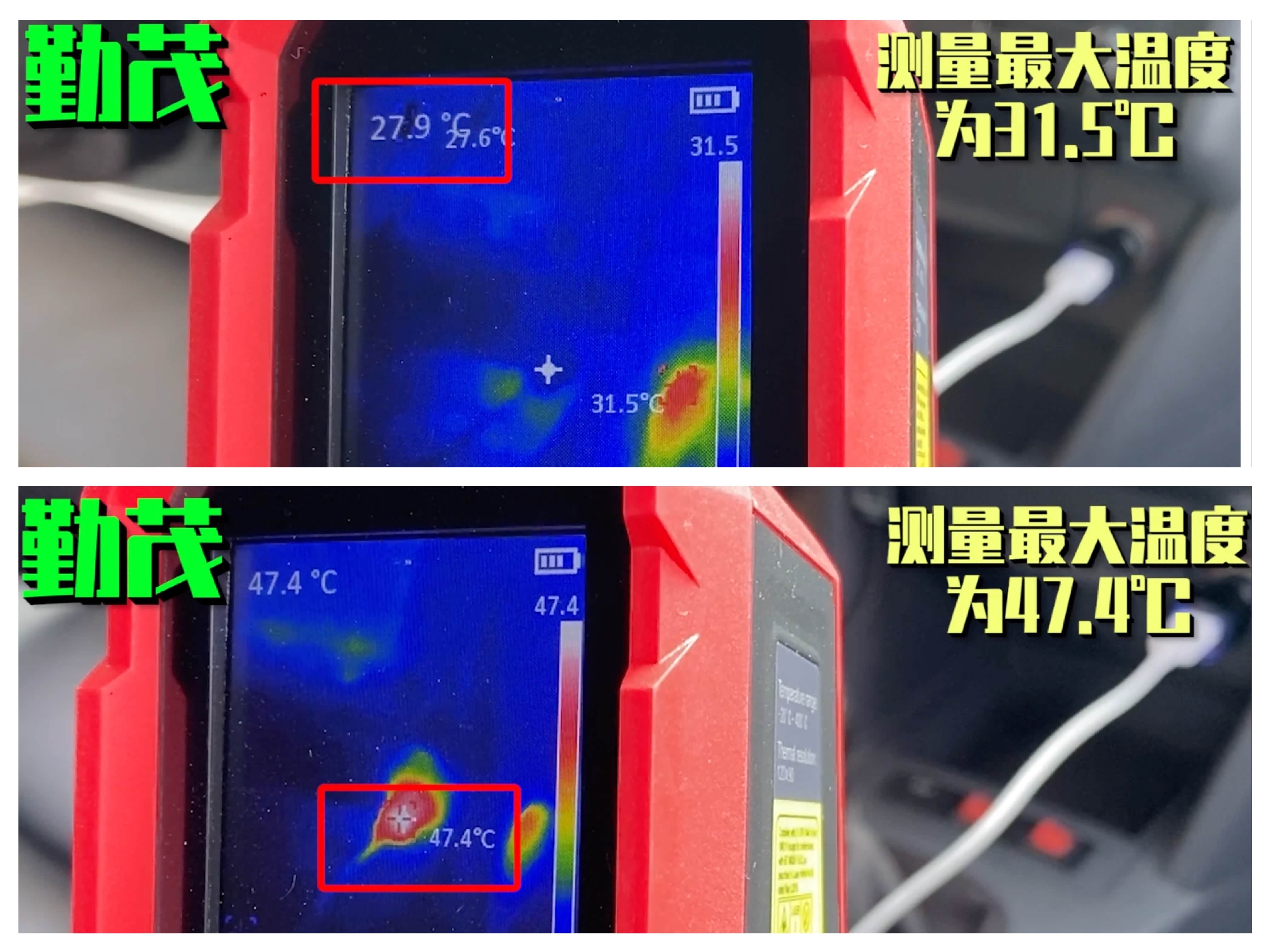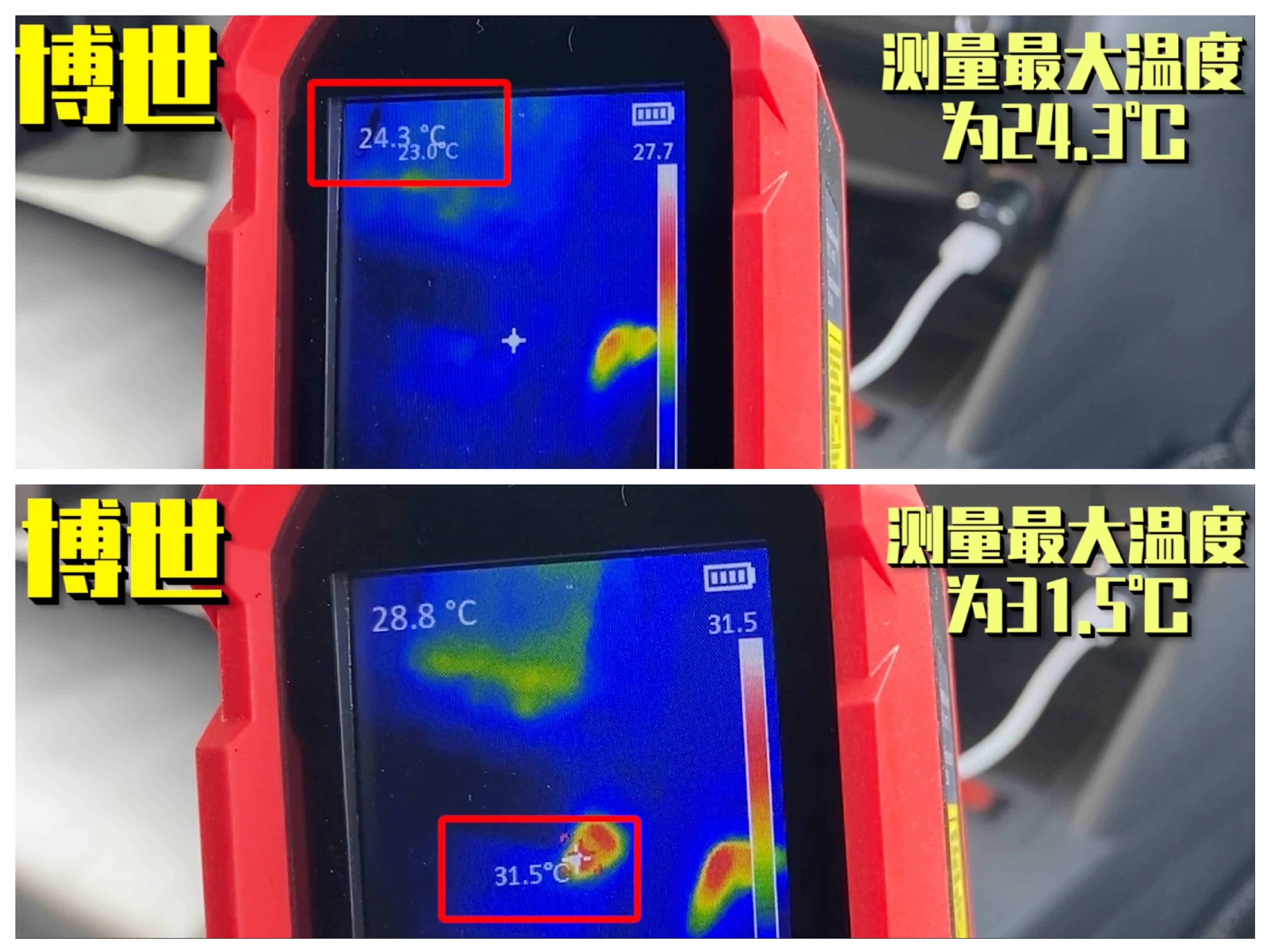 关键是这还是车辆避光的位置,并且怠速情况下的充电上升温度,如果车子跑起来,温度应该会更高。所以这一点还是有些危险的。