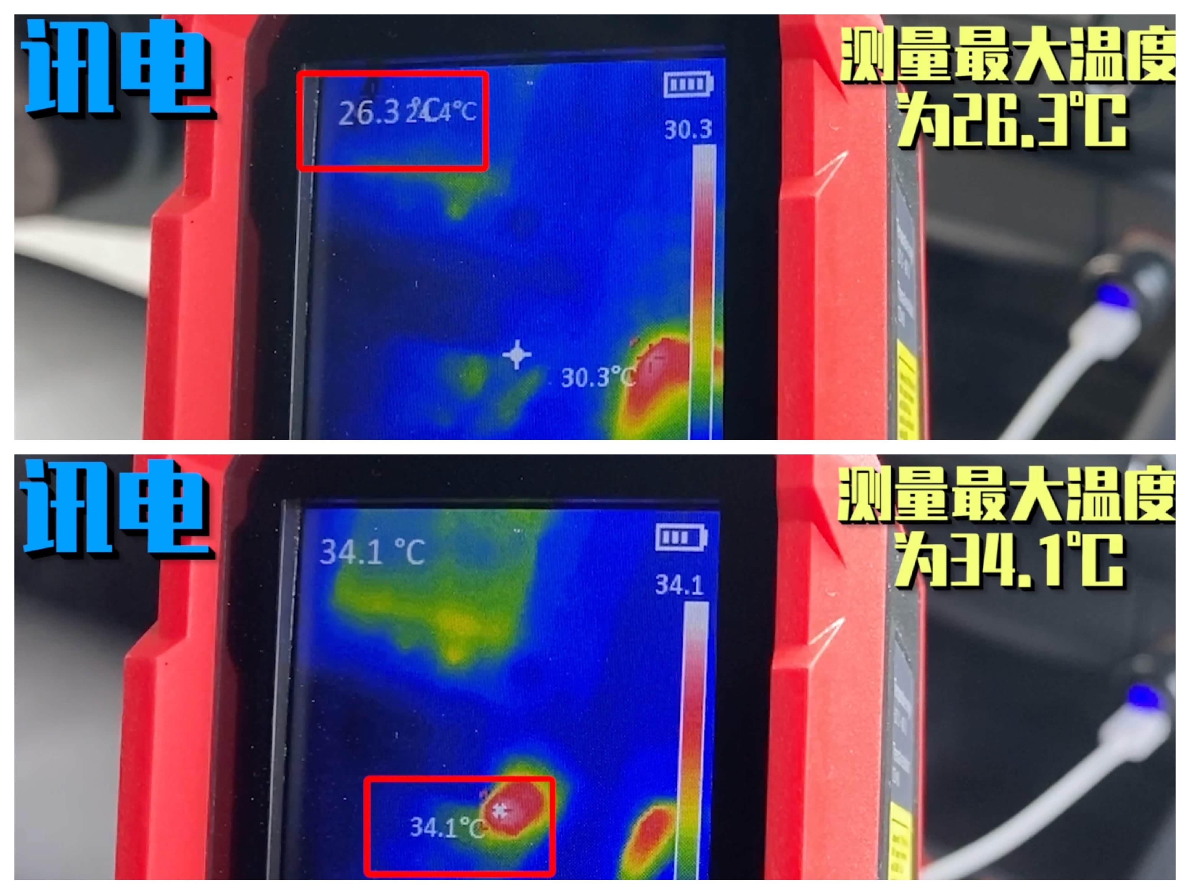 这里我要补充一点的是,这个热成像仪是带高低温追踪的,所以我只需要读取这个测量仪追踪的最高温度即可。