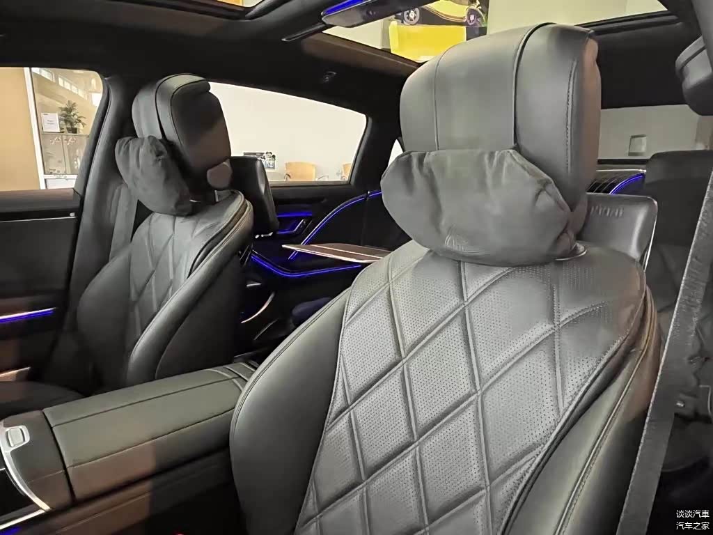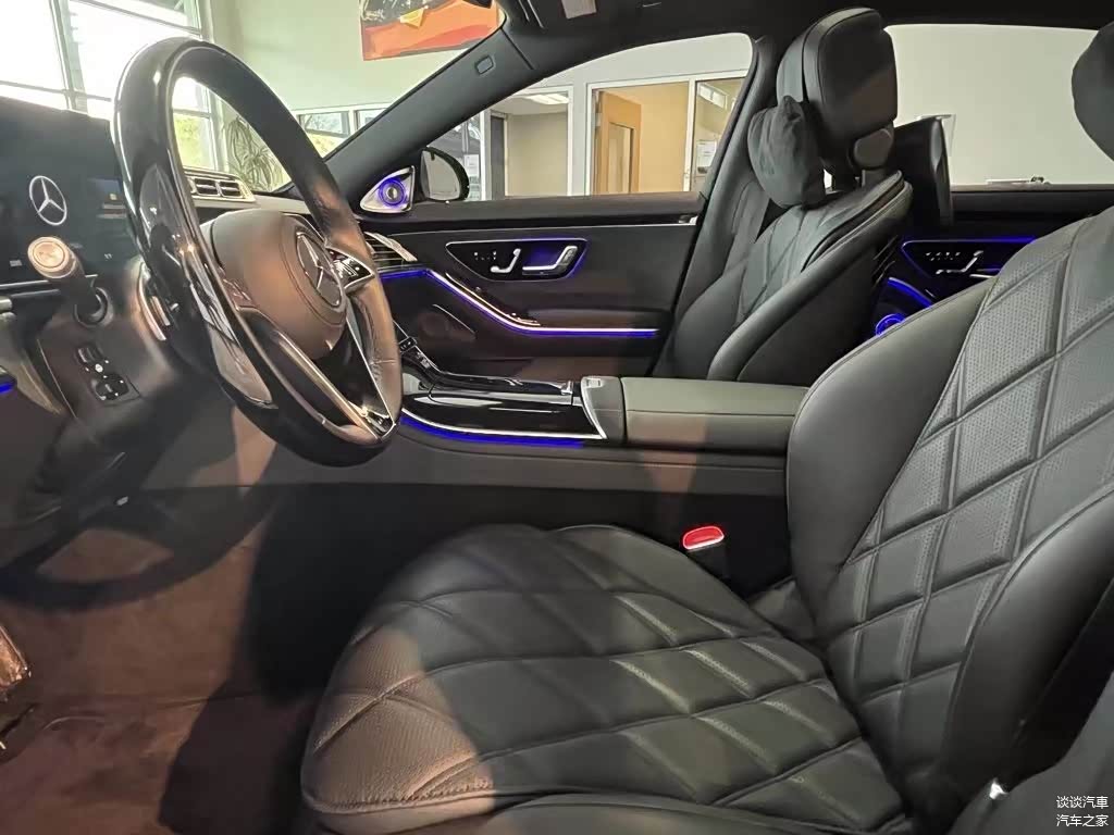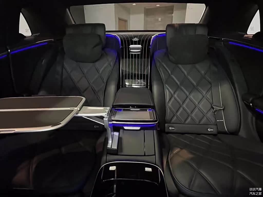 内饰风格变化大,融入奔驰最新的设计理念,整体思路上更年轻化,看起来科技感也更强,每一处细节似乎都隐藏着小彩蛋,最引人注目的无疑是中控大尺寸屏幕的设计,这种设计不仅看着很有科技感同时也很受年轻消费者的青睐,12.3英寸全液晶仪表盘采用悬浮式设计,给人新鲜感很足,多功能方向盘采用三幅式造型,功能按键丰富,满足日常行车需求,座椅材质质感优秀,带有电动调节,造型上比较强调舒适性和贴合感,奔驰迈巴赫S580对于后排乘客照顾同样周到,后排座椅支持电动调节,配备有加热,按摩,通风,同时还配备有后排独立空调,前排座椅后方的两块显示屏也可提供丰富的影音功能。