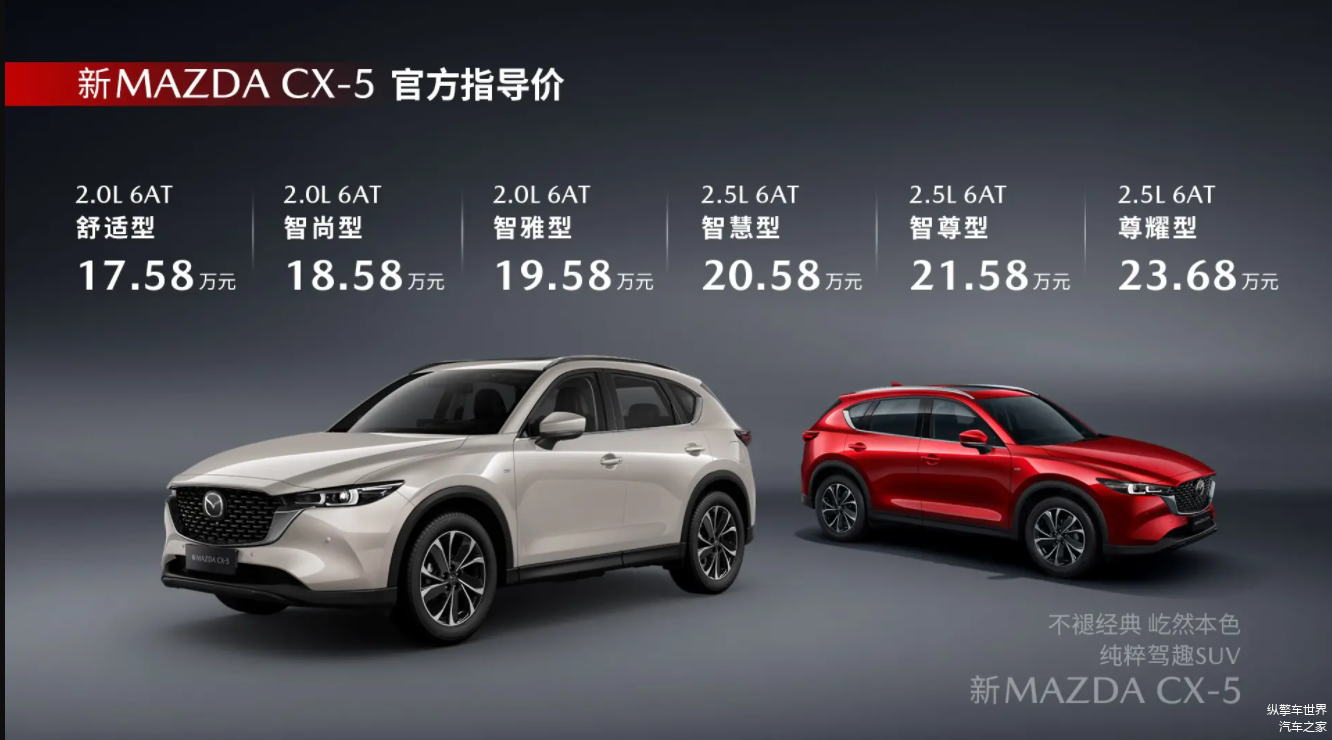马自达CX-5(图片 | 参数 | 询价)是马自达旗下销量比较好的车型,优雅的魂动外观和出色的操控体验让不少消费者为之心动,日前,2022款马自达CX-5正式上市,新车共推出6款车型,售价区间为17.58-23.68万元。与老款车型相比,新车在价格上进行了一定的下调,那么对于目标消费者来说,这款车的用车成本如何呢?
