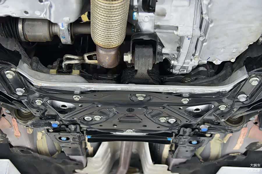 前副车架与之前我们拆过的思域一样,都是H形副车架。虽然前端有一根横“梁”,但实际上只是一根很薄的单层钢板,起不到承力作用。