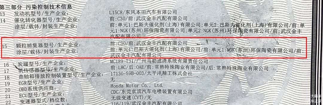 为了通过国六排放,这辆车需要使用颗粒捕捉器。目前颗粒捕捉器的布局方式有三种,四元催化、紧耦合式以及后置式。这辆车三元催化器和颗粒捕捉器的供应商,NGK提供陶瓷载体,巴斯夫提供涂层,因此这辆车是“四元催化”形式。