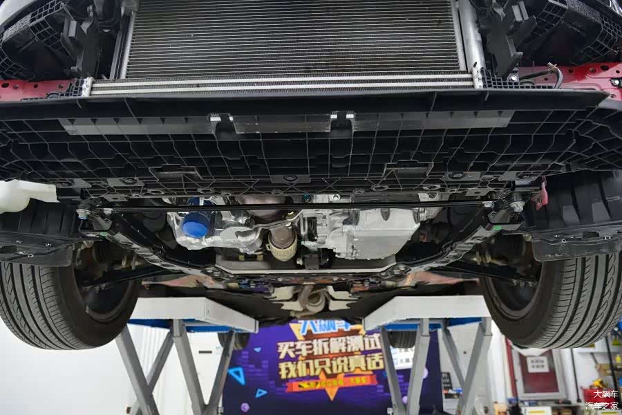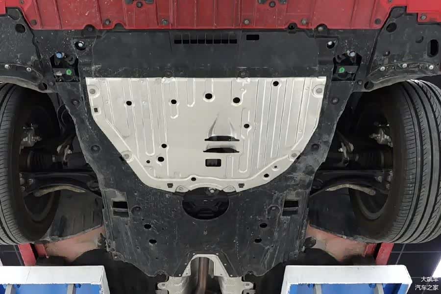 这辆新款思域的底盘依旧是那么平整,与之前我们拆过的几代思域相比,没有什么区别。发动机下方有一大块护板,还带有较大面积的铝合金板,防止被发动机烘烤变形。