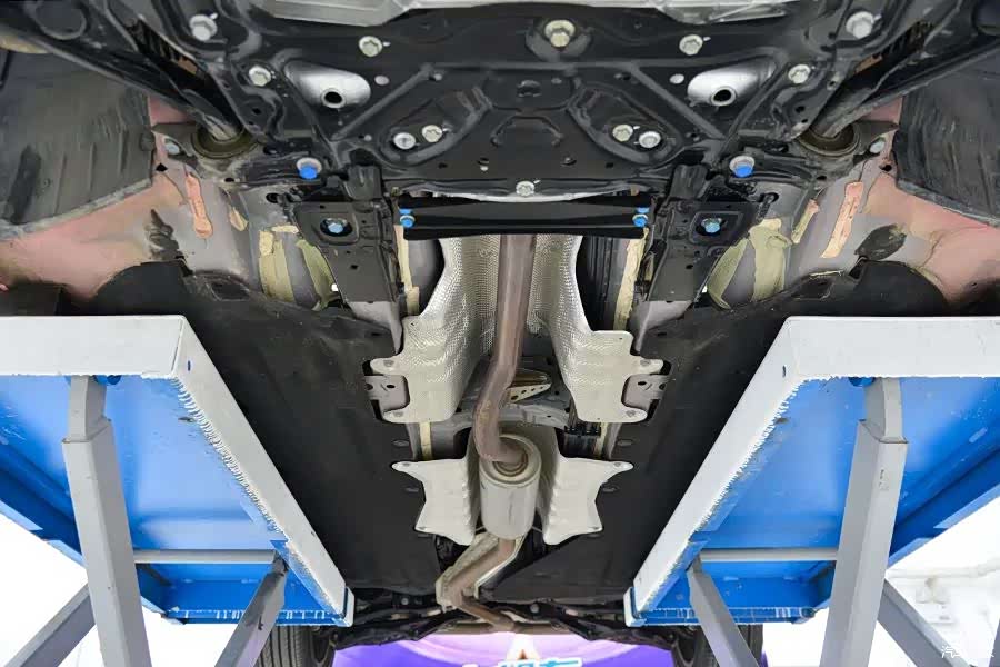 排气隔热并不完整,有很多位置缺失,管线也暴露在外,没有被完全遮挡和隐藏。大部分底盘都没有喷涂额外的树脂材料进行降噪防腐,与之前拆过的几代思域如出一辙。