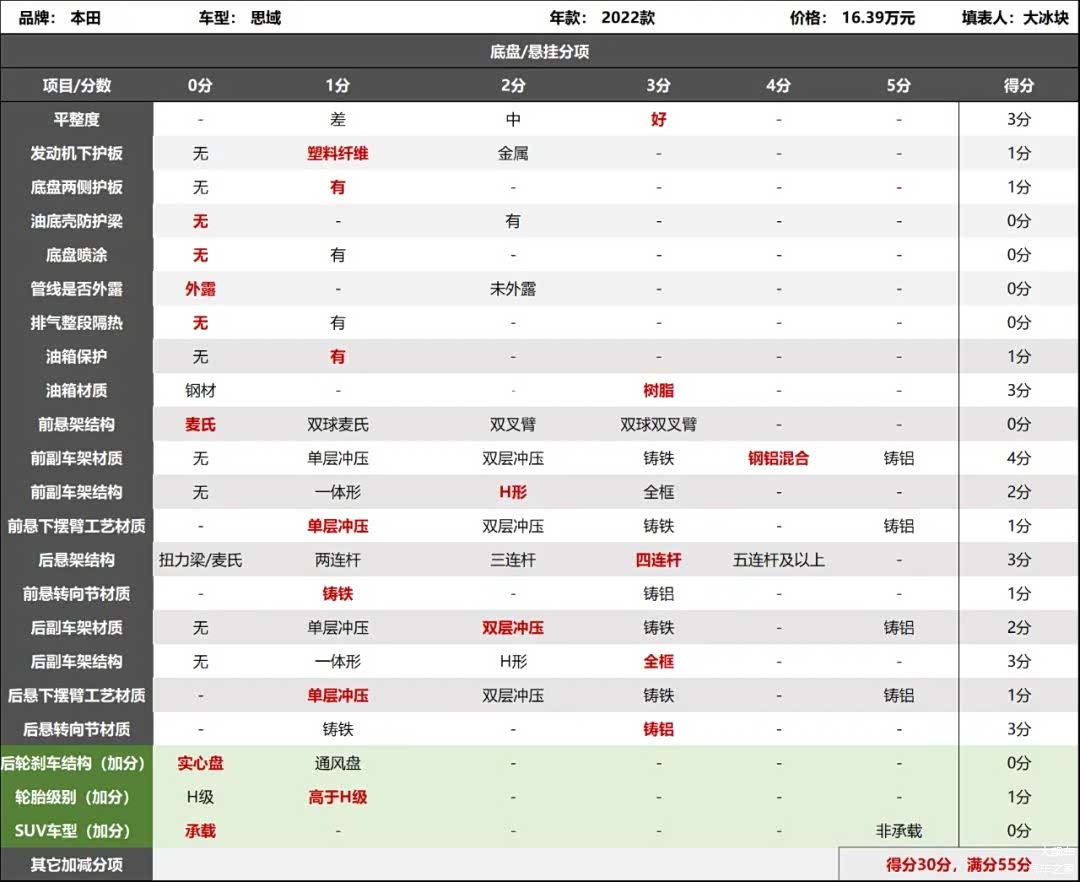2022款本田思域底盘评分