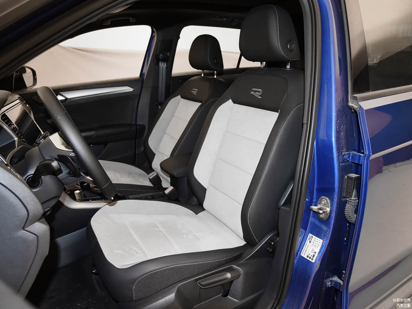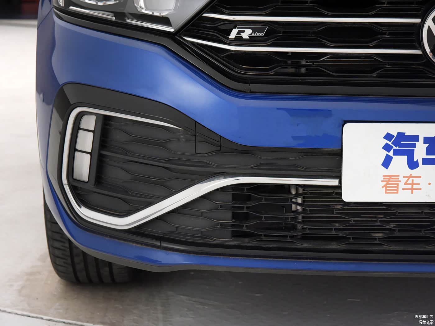 普通版版车型与R-Line运动外观套件主要的差异在于前包围,普通版车型前包围采用三段式设计,两侧进气口的位置配有环形日间行车灯和卤素前雾灯。而R-Line运动外观的前包围使用了贯穿式镀铬饰条进行装饰,但是没有配备前雾灯。