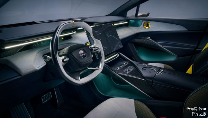 座舱设计则是走向新创电动车厂风格,Lotus缩小驾驶座的仪錶板尺寸,仅留下镶嵌在仪表台与空调出风口支间缝隙高度仅3公分的长条状液晶屏幕,用以显示电池电量百分比、续驶里程、车速、驾驶模式等资讯。而前座乘客的相对位置也设计有同样尺寸的小屏幕,可以显示音响、导航还有行动通讯等讯息。